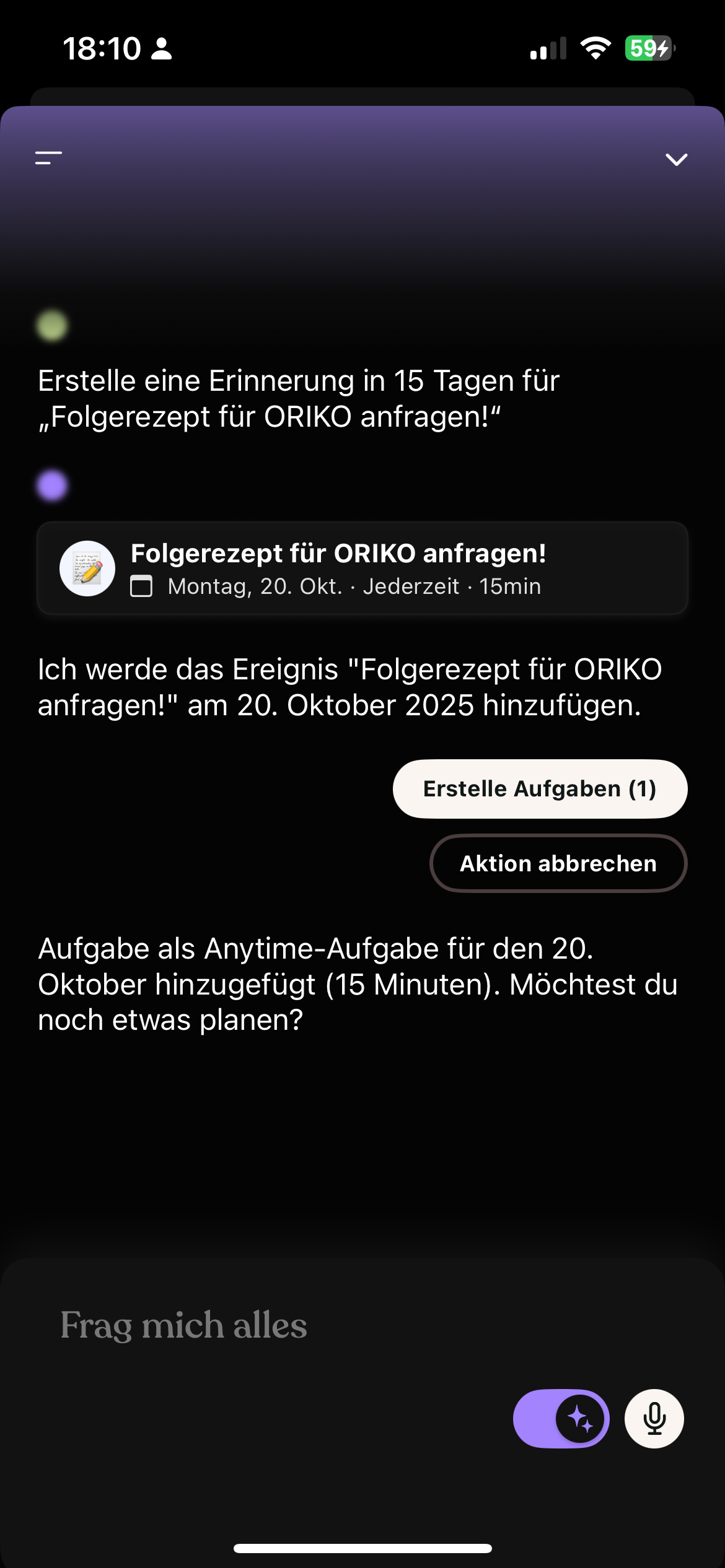 Die Erinnerung lasse ich aber drin, damit ich es dann auch über die KV App einreiche und rechtzeitig den Code am Start habe wenn sich demnächst dann die DiGA meldet ![]()