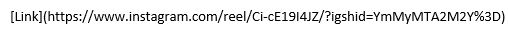 Nicht so wild, denke ich. Ich kann es Dir nicht einfach als Text reinschreiben, weil es sich automatisch als Link darstellt, selbst per DM. Aber im Ergebnis kommt in eckige Klammern der Verweis-Text und direkt danach in runde Klammern die URL. Also so: