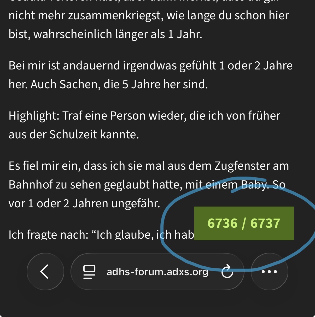 Du hast ADHS, wenn du schreiben willst, dass du den Humor-Thread erst gelesen hast, nachdem du 1 Jahr lang hier warst, weil du bisher schon ca. 4x beim Versuch, zum neuesten Beitrag runter zu scrollen, die Geduld verloren hast, aber dann merkst, dass du gar nicht mehr zusammenkriegst, wie lange du schon hier bist, wahrscheinlich länger als 1 Jahr.