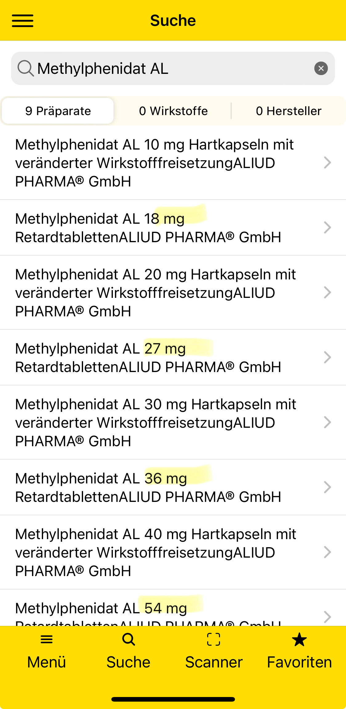 Die Milligramm Zahl war das, was mir fehlte, weil es verschiedene gibt. Die mit den krummen mg Angaben im Screenshot wären nämlich ein Generikum von Concerta, was wieder ganz anders zusammengesetzt wäre und daher auch anders freisetzt und wirkt.