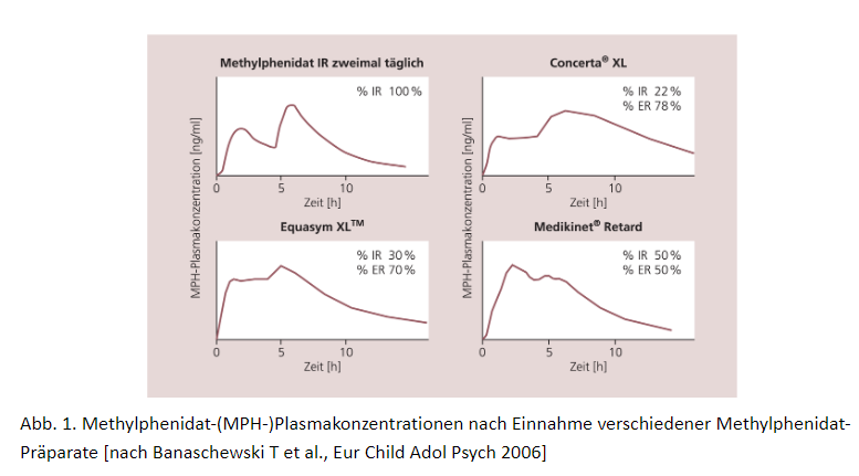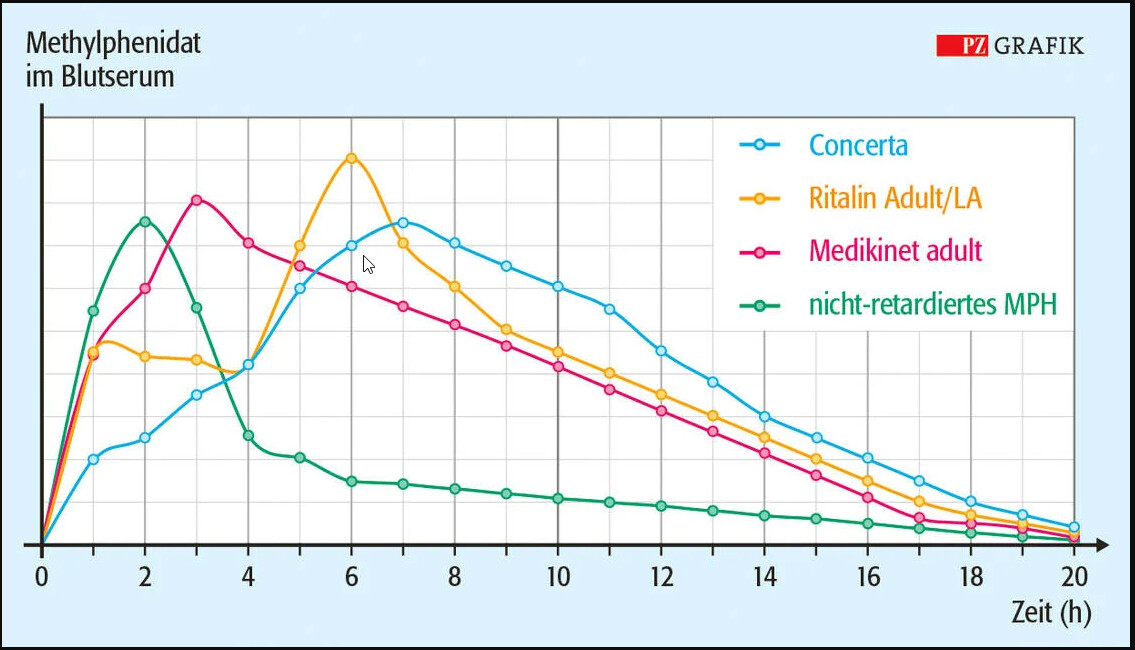 Für retardiertes MPH habe ich folgende Kurven für den Plasmaspiegel gefunden: