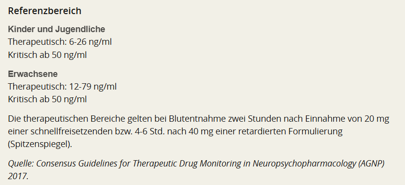 Letztlich sagt die Bestimmung des Blutspiegels bei MPH nur eins: Du hast MPH in einer Dosis im therapeutischen Bereich im Blut. (Ich gehe nicht davon aus, dass da bei 36 mg irgendwas anderes bei rauskommt). Und dafür braucht man keine Laboruntersuchung. Dafür reicht eine logische Schlussfolgerung: dass Du MPH im Blut hast, wenn Du Dir MPH einwirfst.