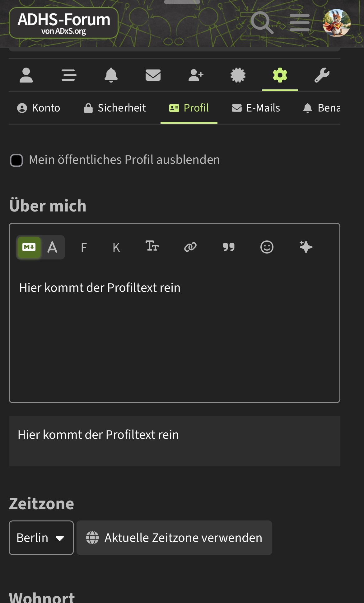 ich habe heute eine zeitlang verzweifelt versucht, den Profiltext unter meinem Profilbild (wo ich schreibe, wo ich herkomme und dass ich hier neu bin) zu bearbeiten. Ich finde keine Editiermöglichkeit. Das Forum ist für mich als ADHSler verglichen mit anderen Foren echt schwierig zu bedienen und unstrukturiert. Eine Änderung wäre grandios, aber ich verstehe auch, dass die Alteingesessenen sich daran gewöhnt haben.