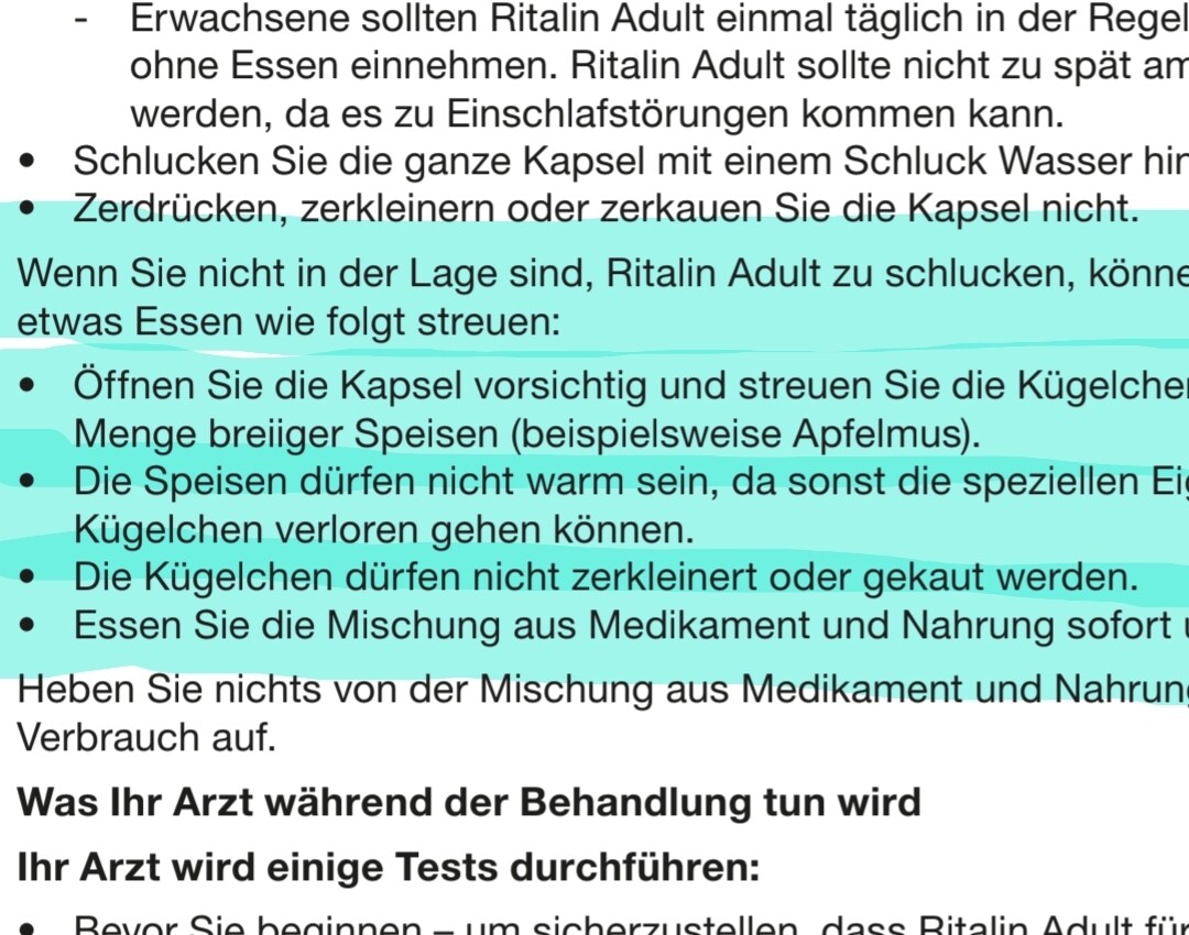 Ggf erstmal nur die optisch richtige Menge Kügelchen Ritalin geben und Unterdosierung in Kauf nehmen und langsam steigern?