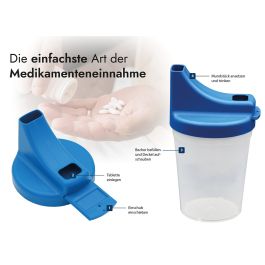 Tablette in den Mund, den Kopf runter → Kinn auf die Brust quasi
