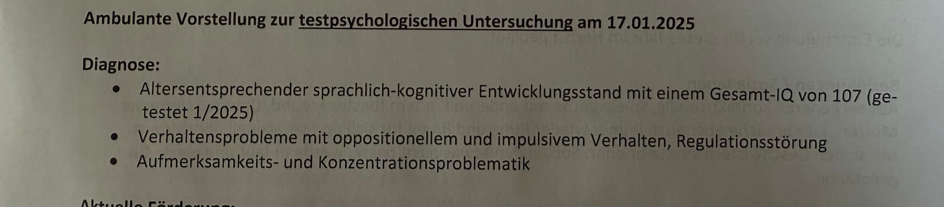 Wir machen aktuell Ergotherapie, die ihm helfen soll, mit seiner Körperwahrnehmung und Impulssteuerung besser klarzukommen. Wir waren auch schon im SPZ wo uns zu einer Schulbegleitung geraten wurde. Es ist ein langer Weg. Auch wir Eltern lernen viel dazu – wie wir ihn besser begleiten, wie wir unsere Worte wählen, wie wir ihn da abholen, wo er steht.